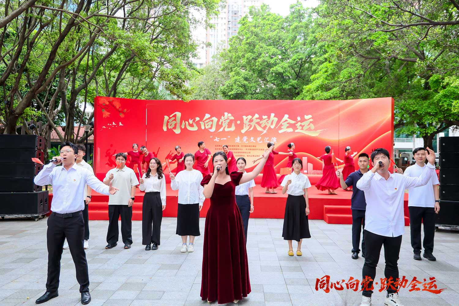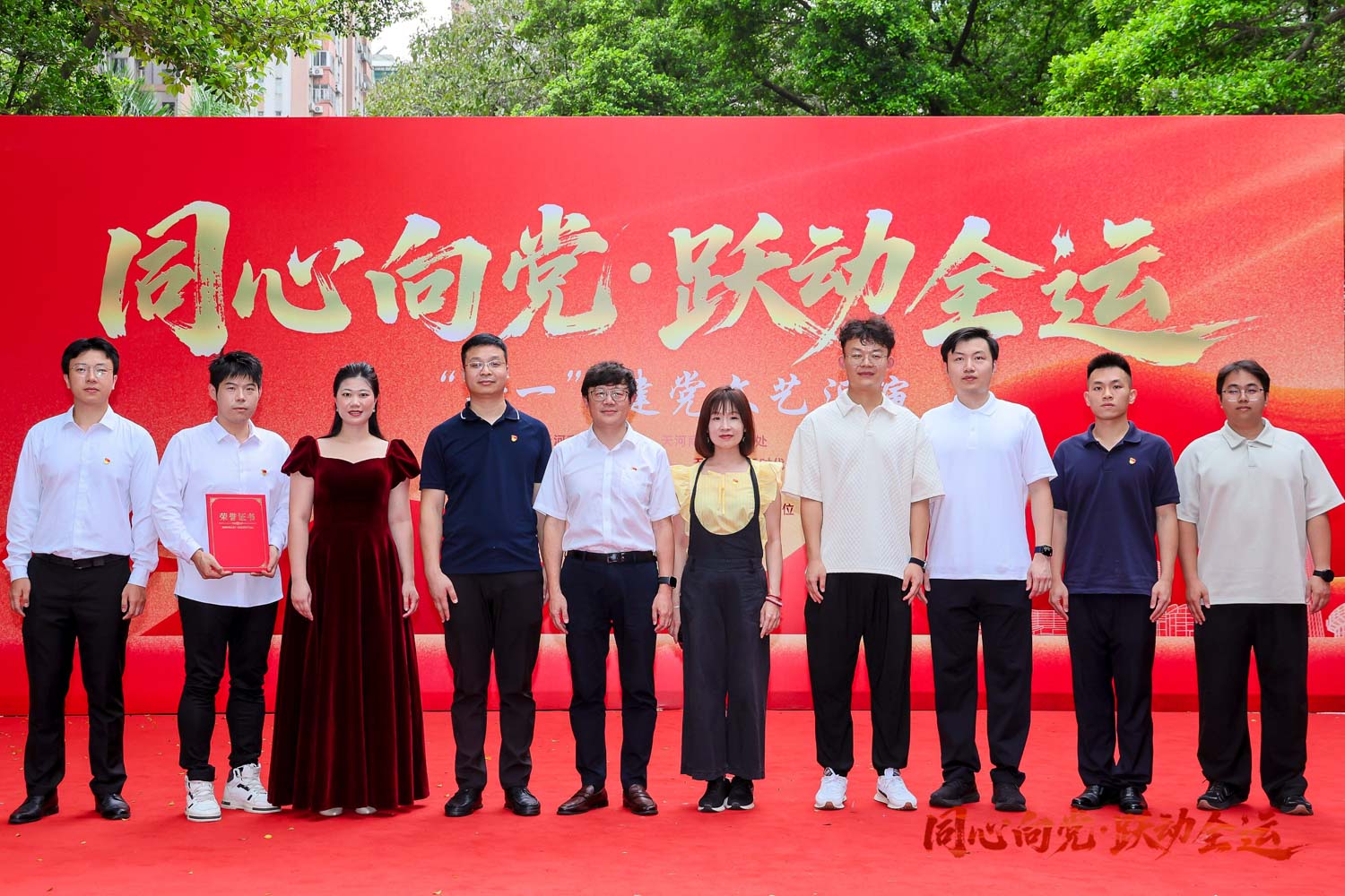 为了庆祝中国共产党成立104周年,为深情回望党的光辉历程,热烈庆祝党的生日,弘扬爱国主义精神,天河南街道于 6 月 28 日下午,在天河大厦中心花园隆重举办“七一”党建文艺汇演活动。此次活动,半岛网页版页面党支部有幸作为辖内非公有制企业代表参与其中,为这场红色盛会增添光彩。